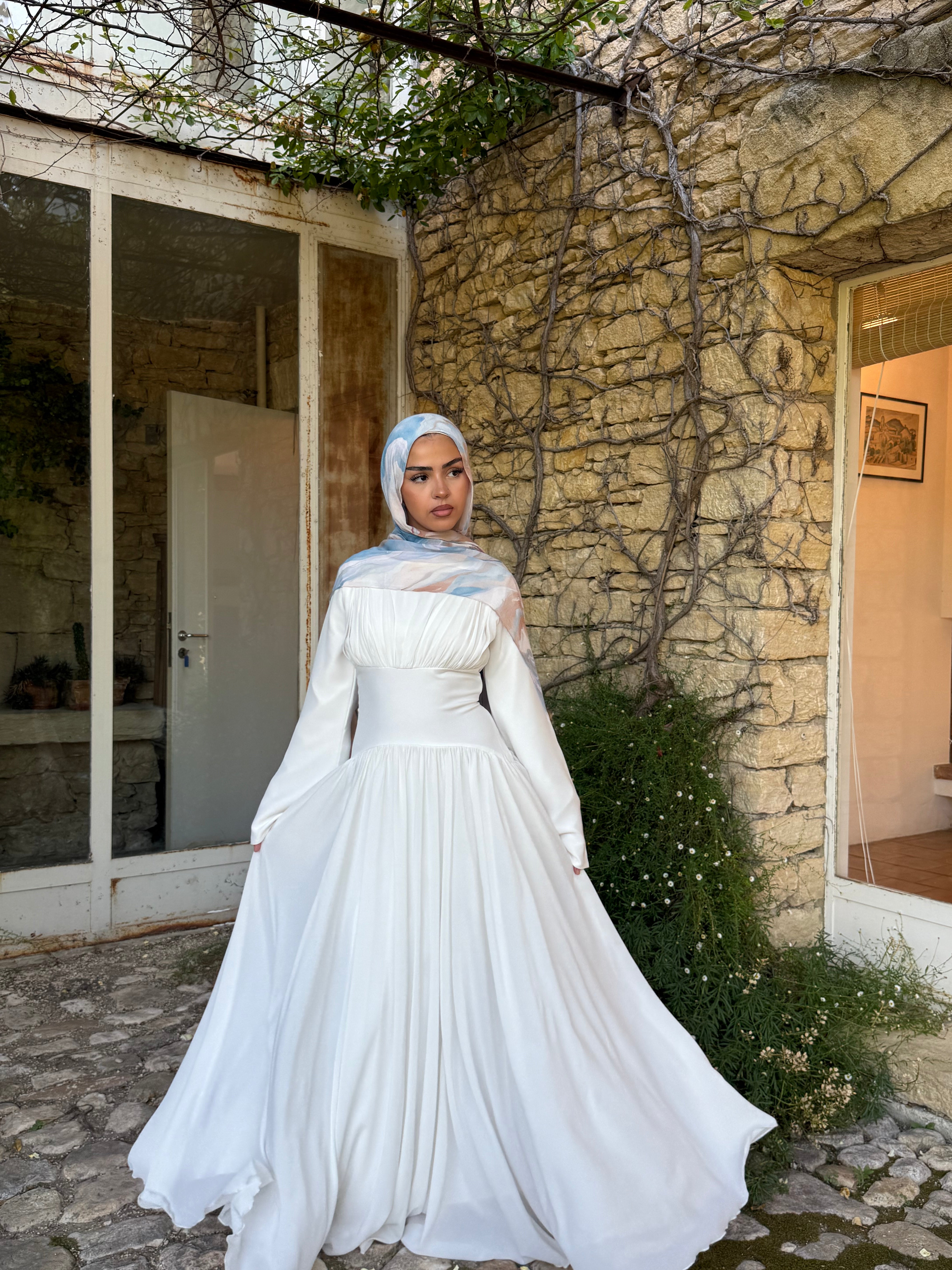 Luna - Ivory Pleated Chiffon Corset Maxi Dress